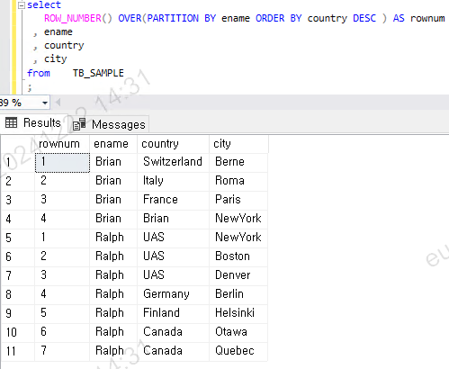 OVER 절 내부의 ORDER BY 절 기준으로 정렬 후 순번을 매겨졌고, SELECT 절에